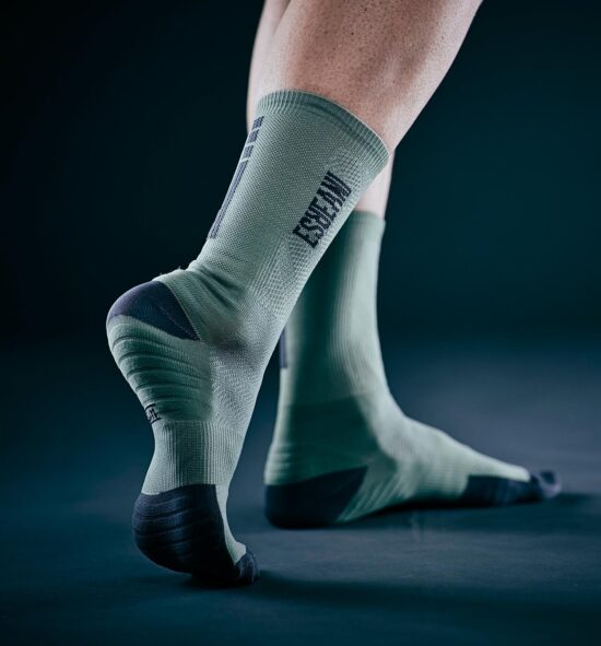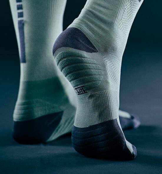 Elles possèdent des zones renforcées en bouclette à l’orteil, à la voûte plantaire et au tendon d’Achille, offrant durabilité et protection dans les zones les plus sollicitées lors du pédalage ou de la course.