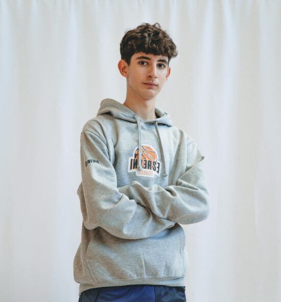 Ce sweat-shirt sportif possède une poche kangourou sur le devant et une capuche. Le modèle adulte comprend un cordon de serrage pour ajuster l’ajustement de la capuche.